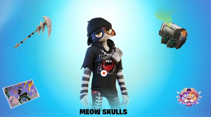 Like most of Fortnite’s original characters, there are so many little details to this skin worth celebrating. The fish bone dangling from his pocket is a fun parody of the excessive wallet chains we’d see only the most prestigious of goths carry, while his back bling features not only grenades, but pungent stink lines that suggest our boy is carrying around some killer kush. Or some catnip, I’m not sure if humanoid cats are still into that kind of stuff.